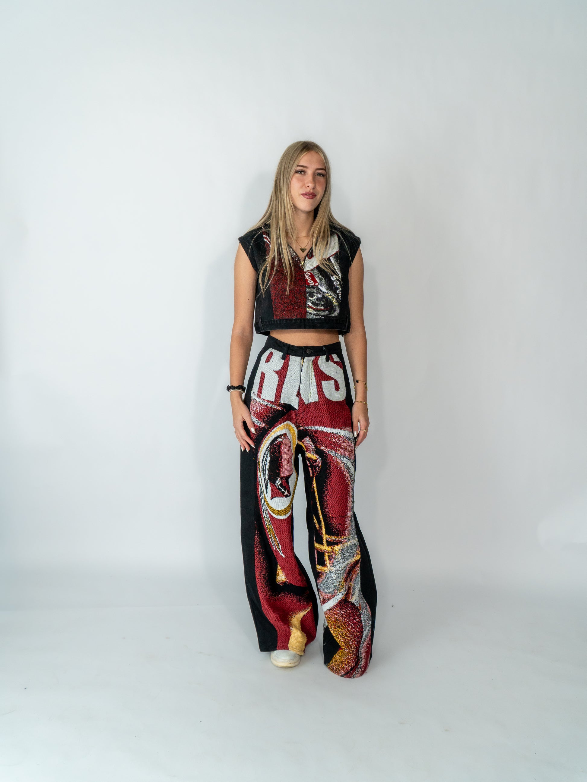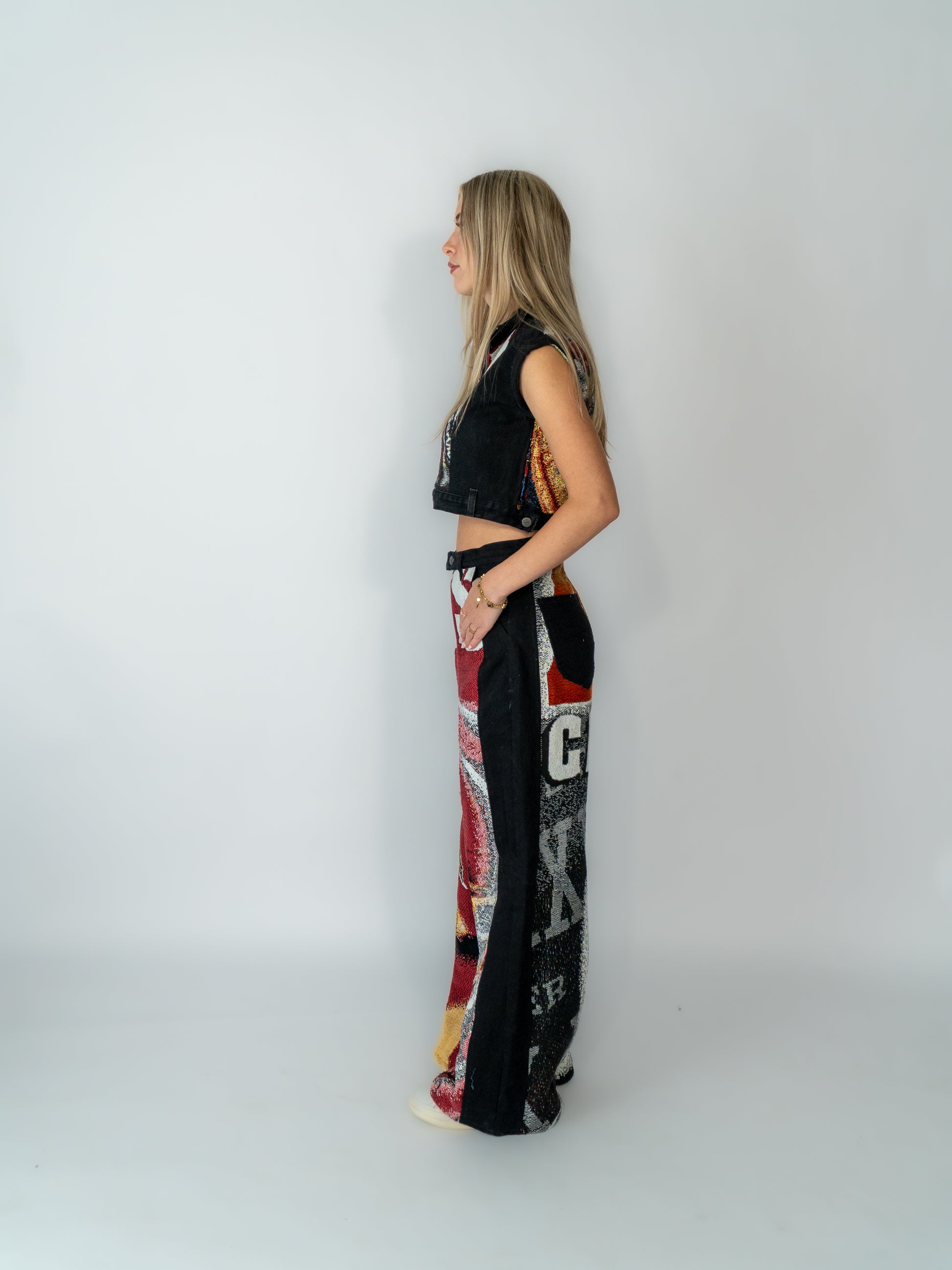 A unique, one-of-one two-set crafted from upcycled tapestry and vintage denim. Every piece is handmade, exclusive, and carries its own story from rescued materials to the final stitching.
