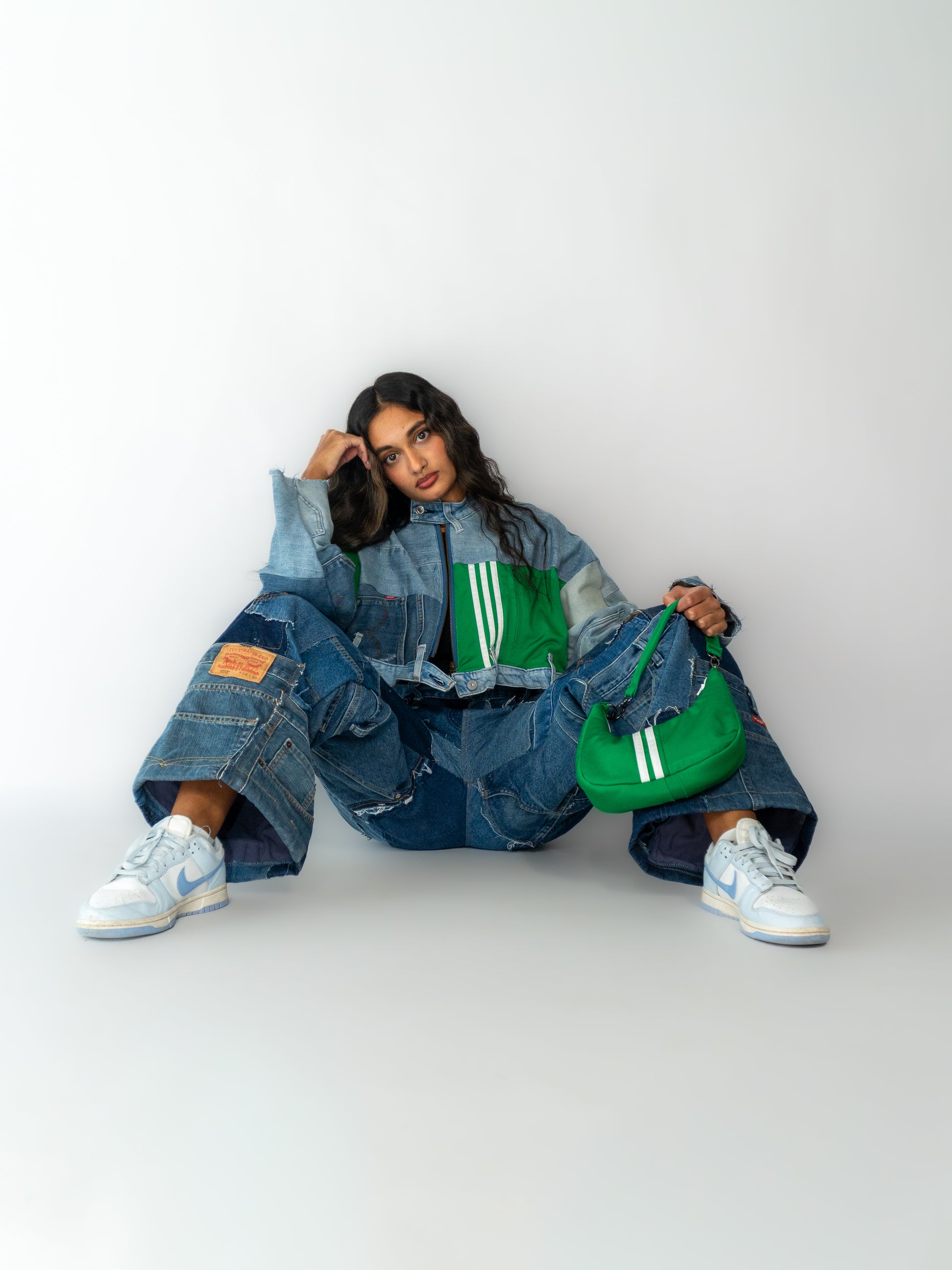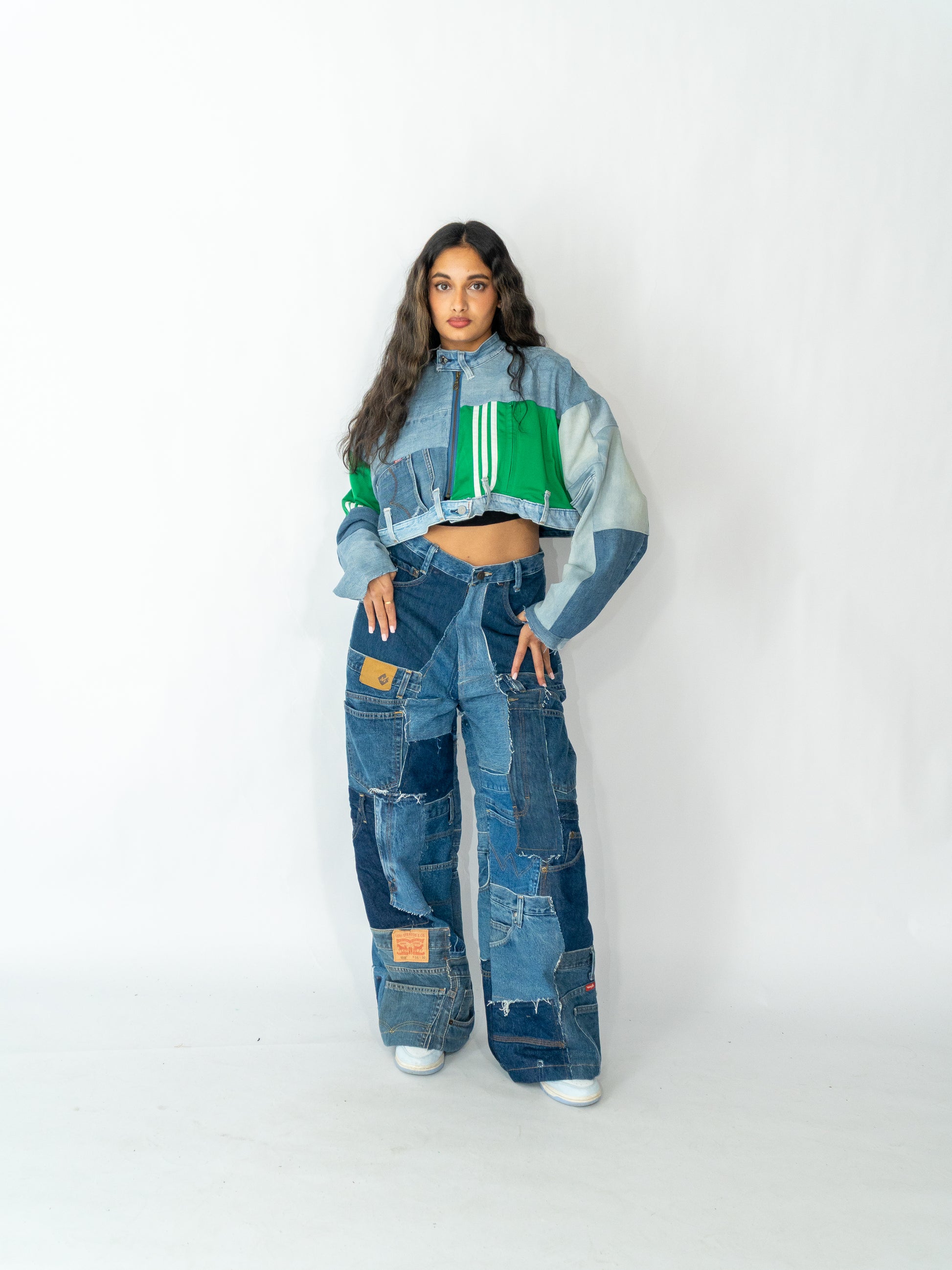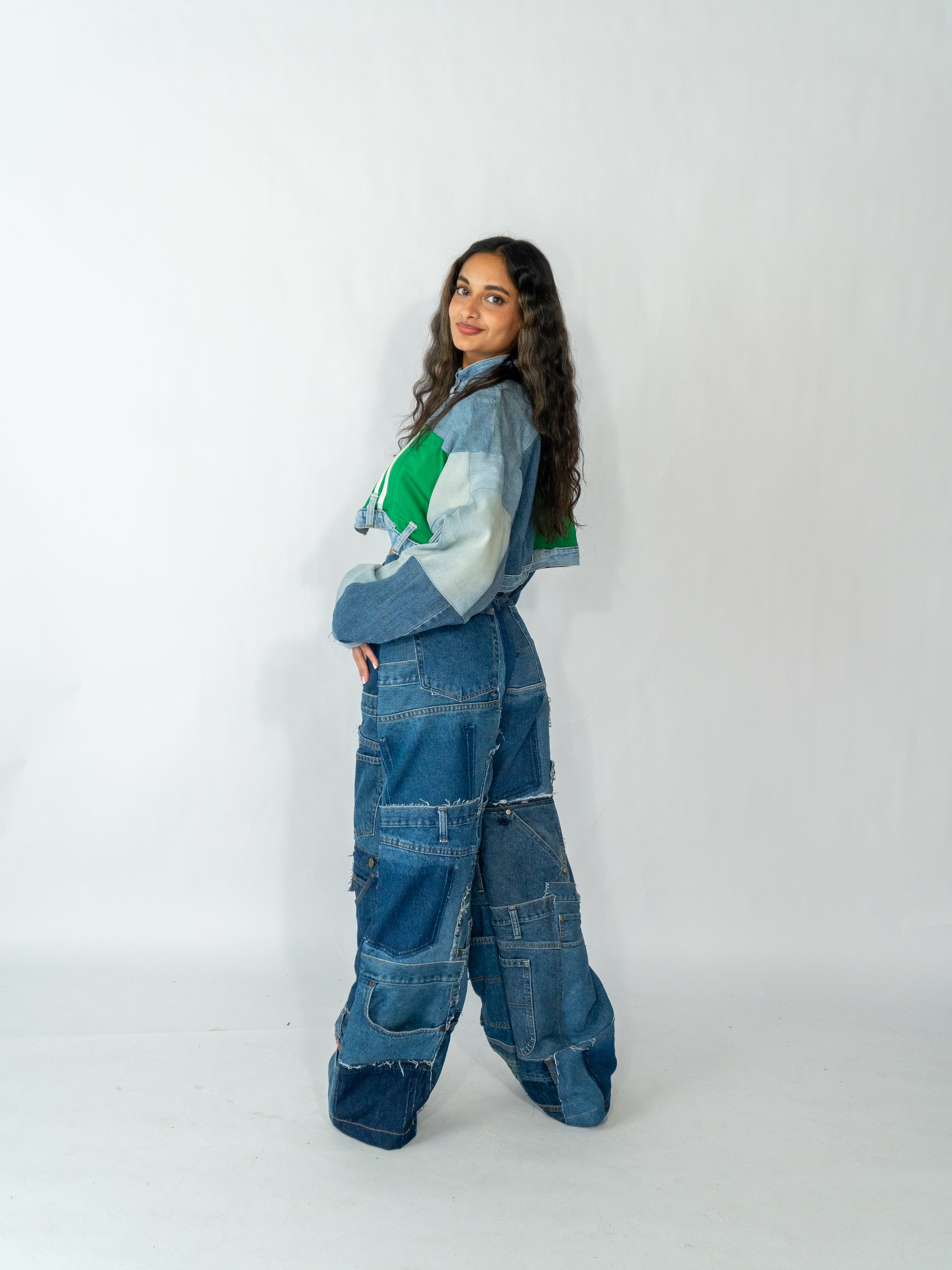 This oversized jacket blends clean lines with bold design for a stylish yet relaxed look. Crafted from upcycled materials, each piece is one-of-a-kind and highlights sustainable craftsmanship.