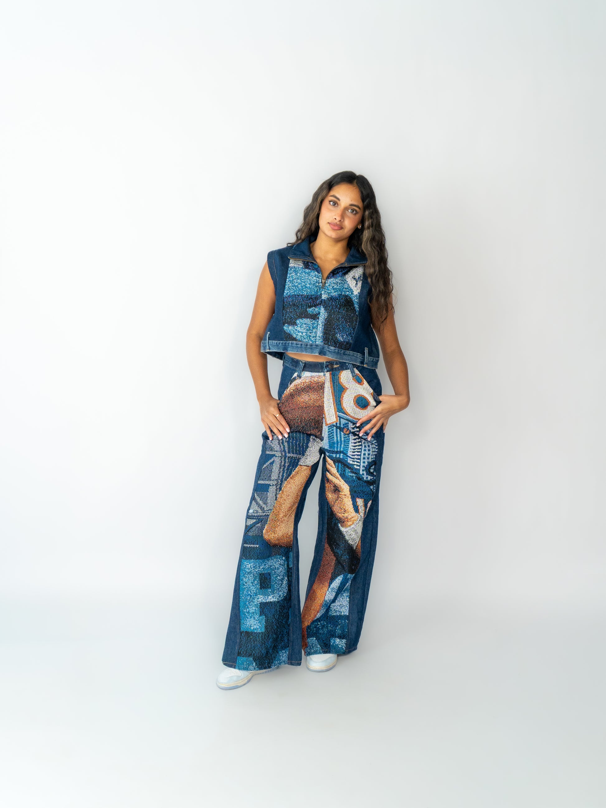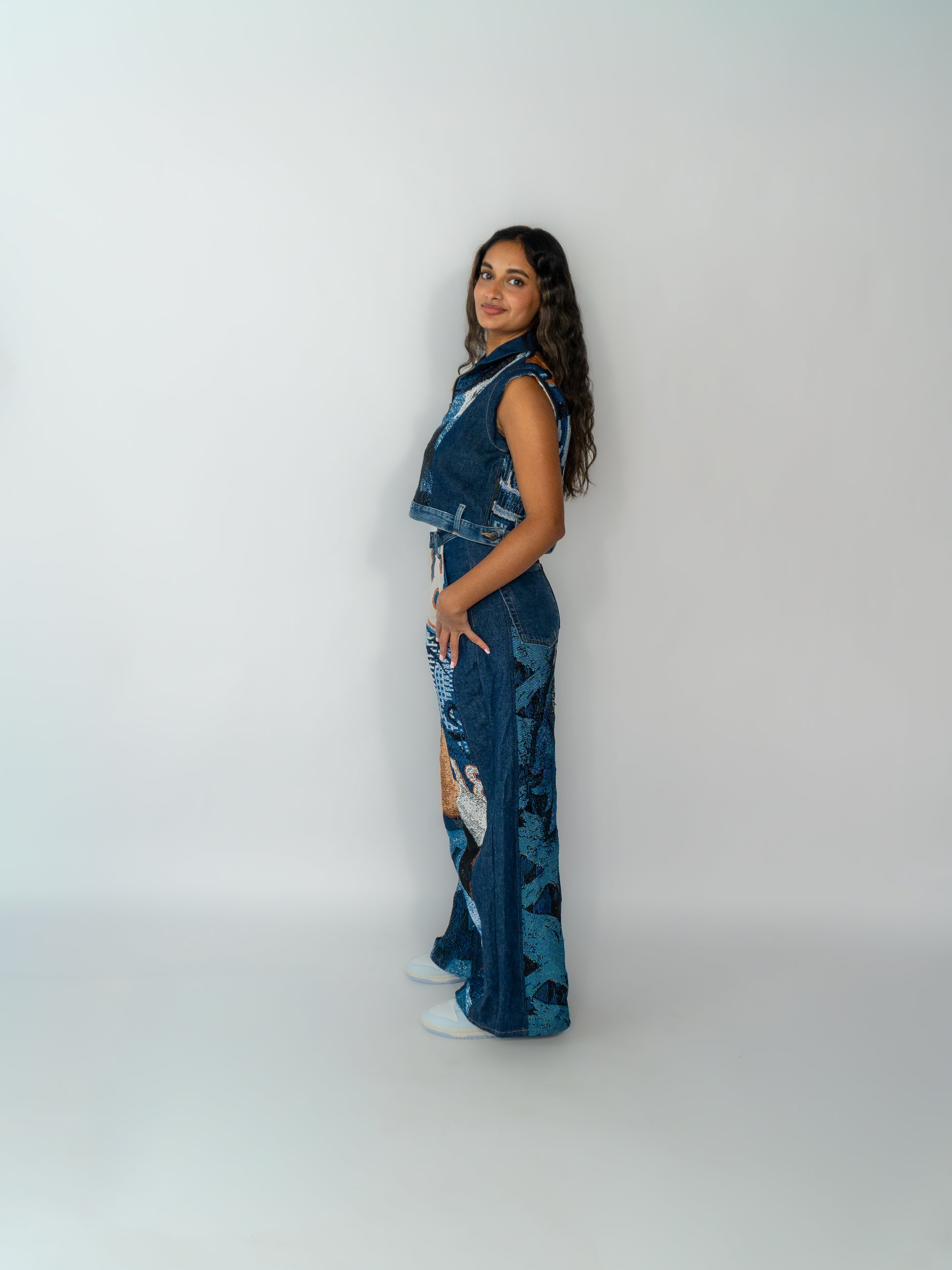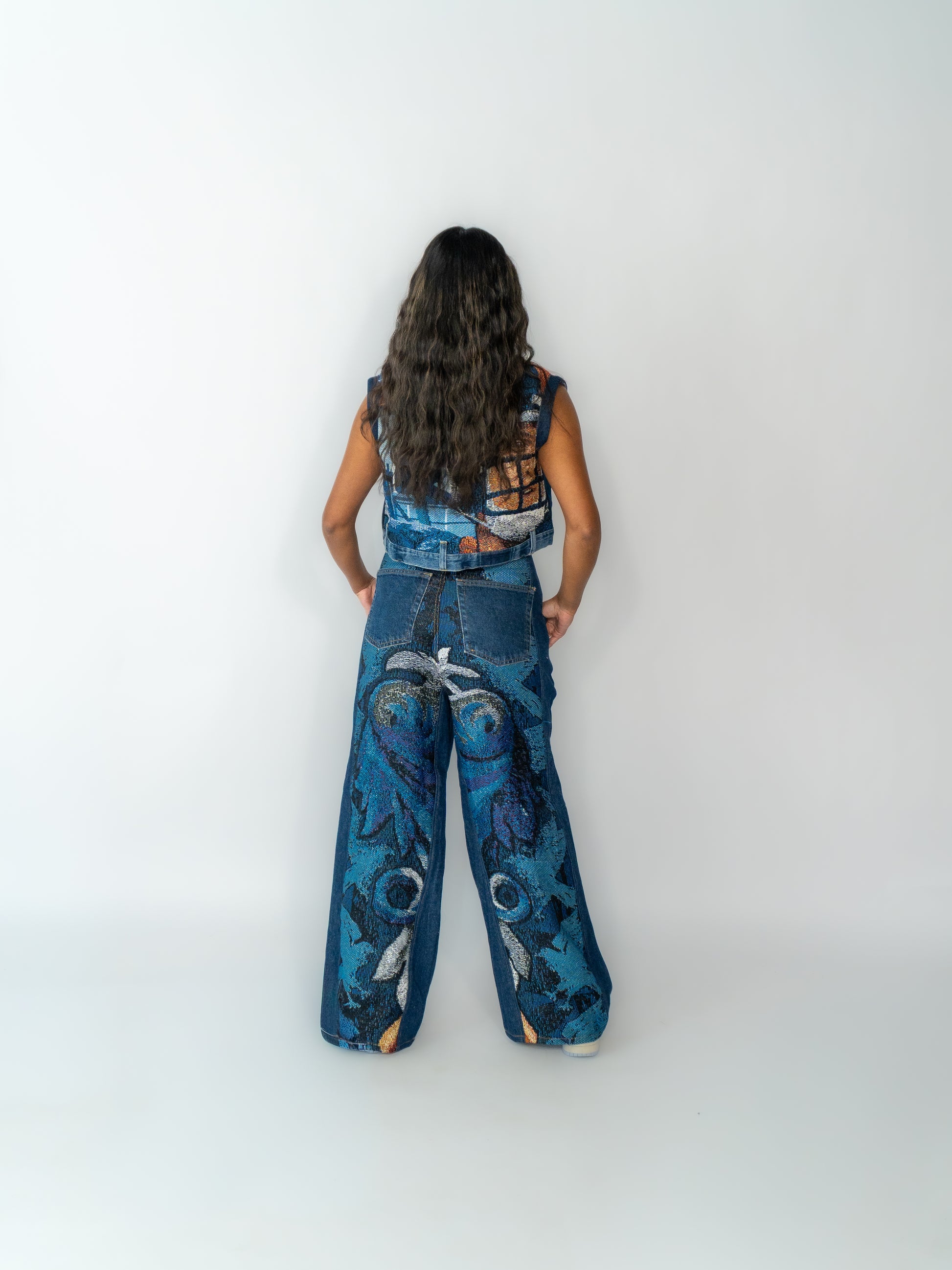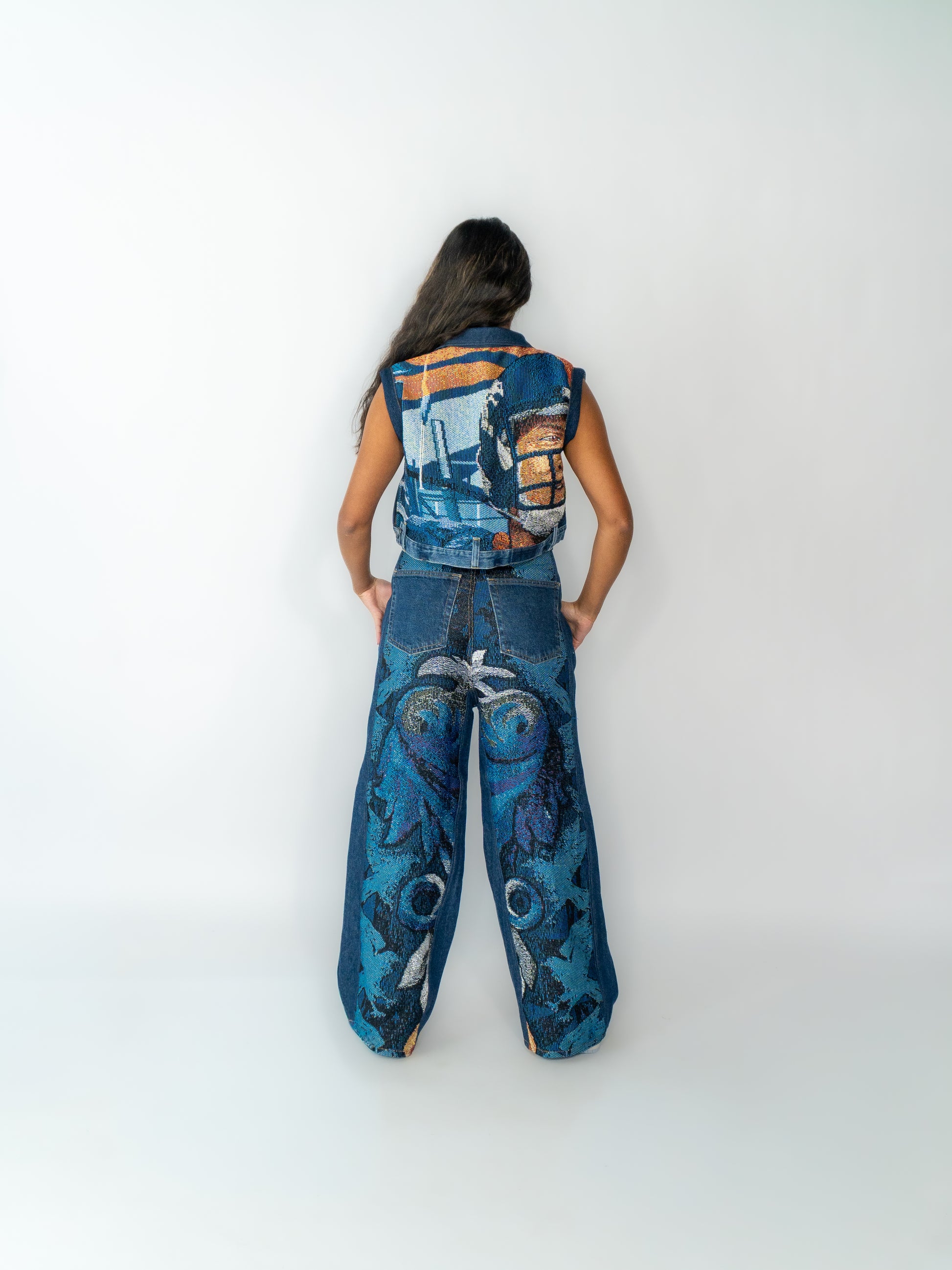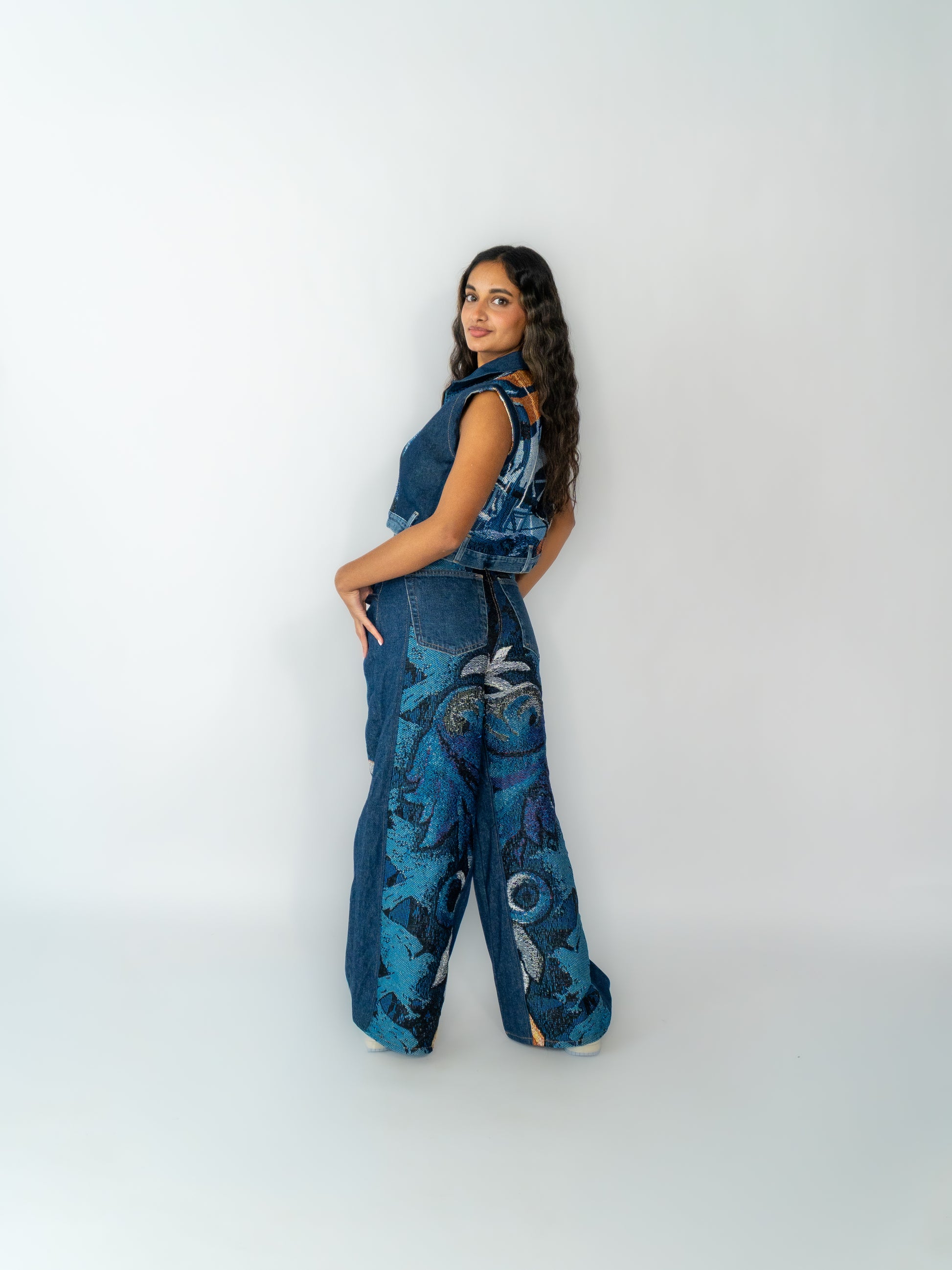 A unique, one-of-one two-set crafted from upcycled tapestry and vintage denim. Every piece is handmade, exclusive, and carries its own story from rescued materials to the final stitching.