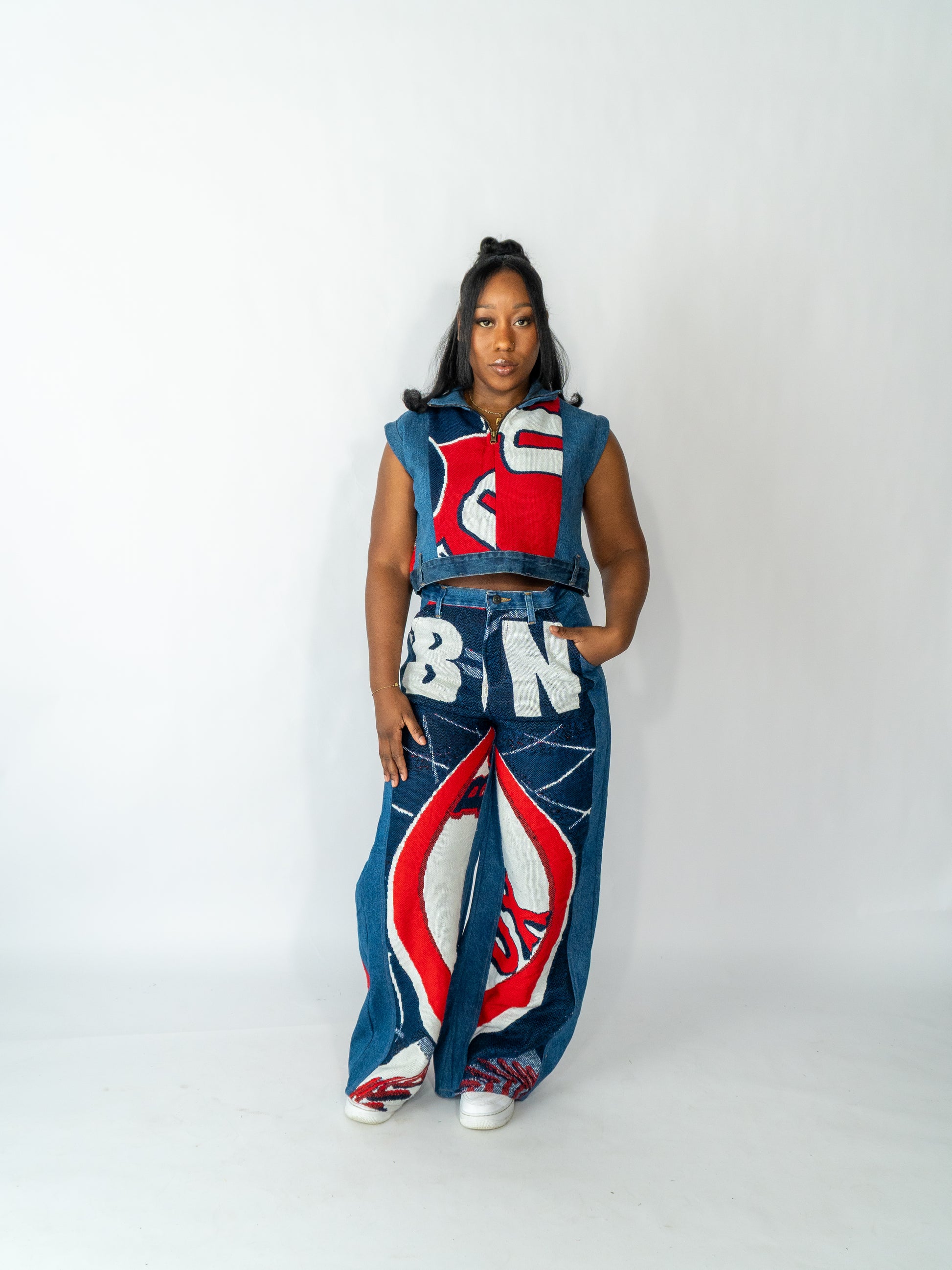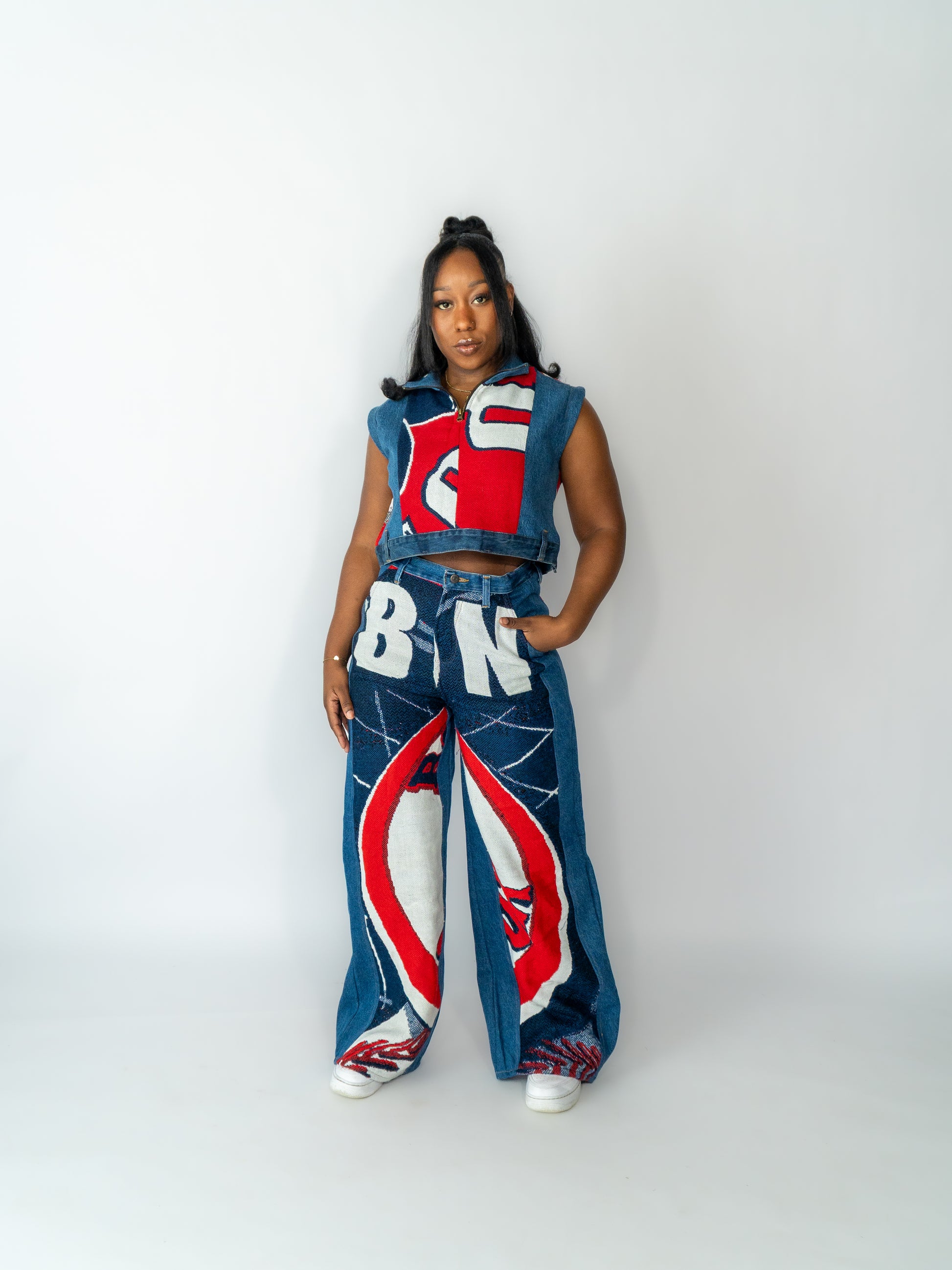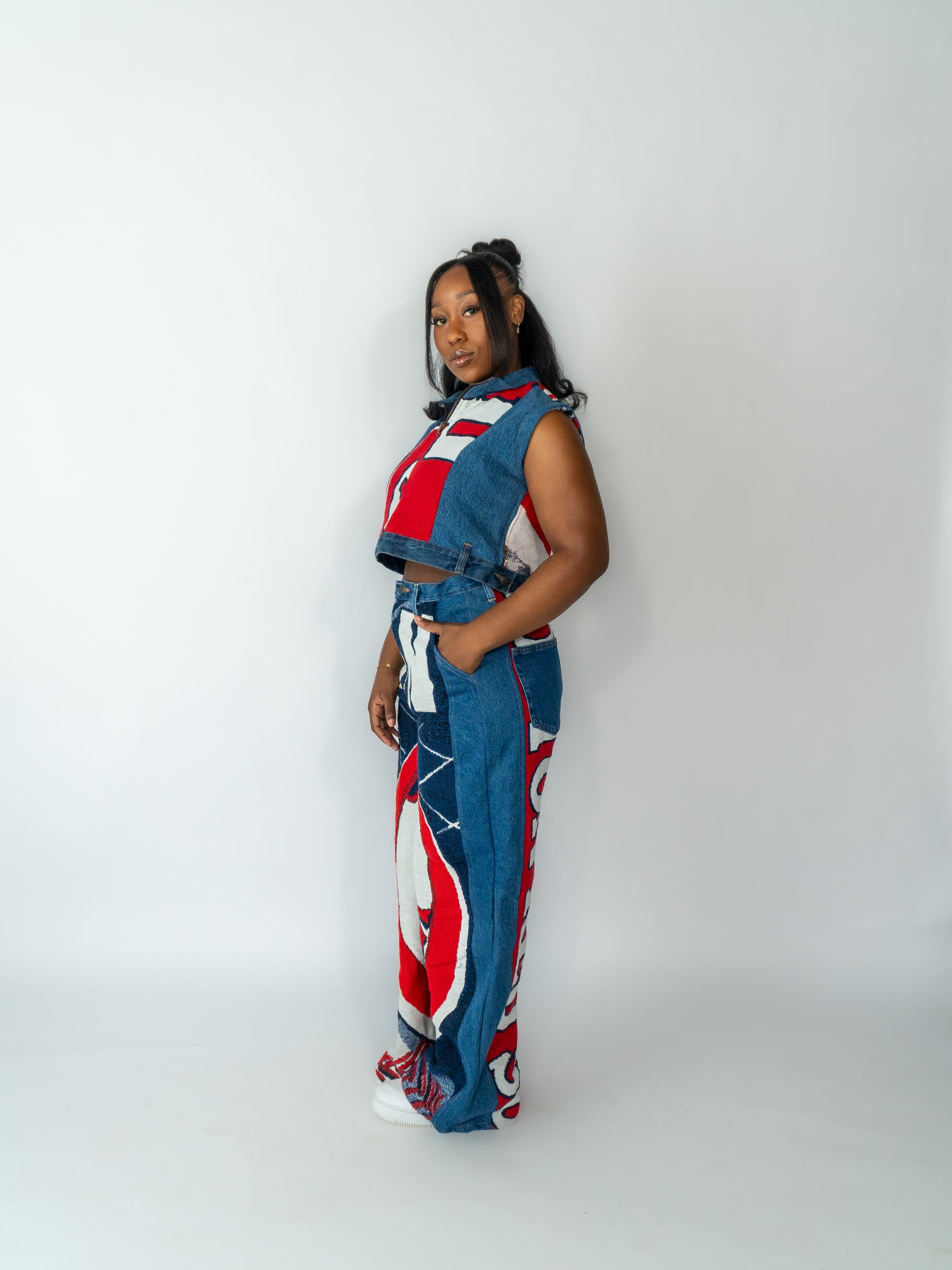 A unique, one-of-one two-set crafted from upcycled tapestry and vintage denim. Every piece is handmade, exclusive, and carries its own story from rescued materials to the final stitching.