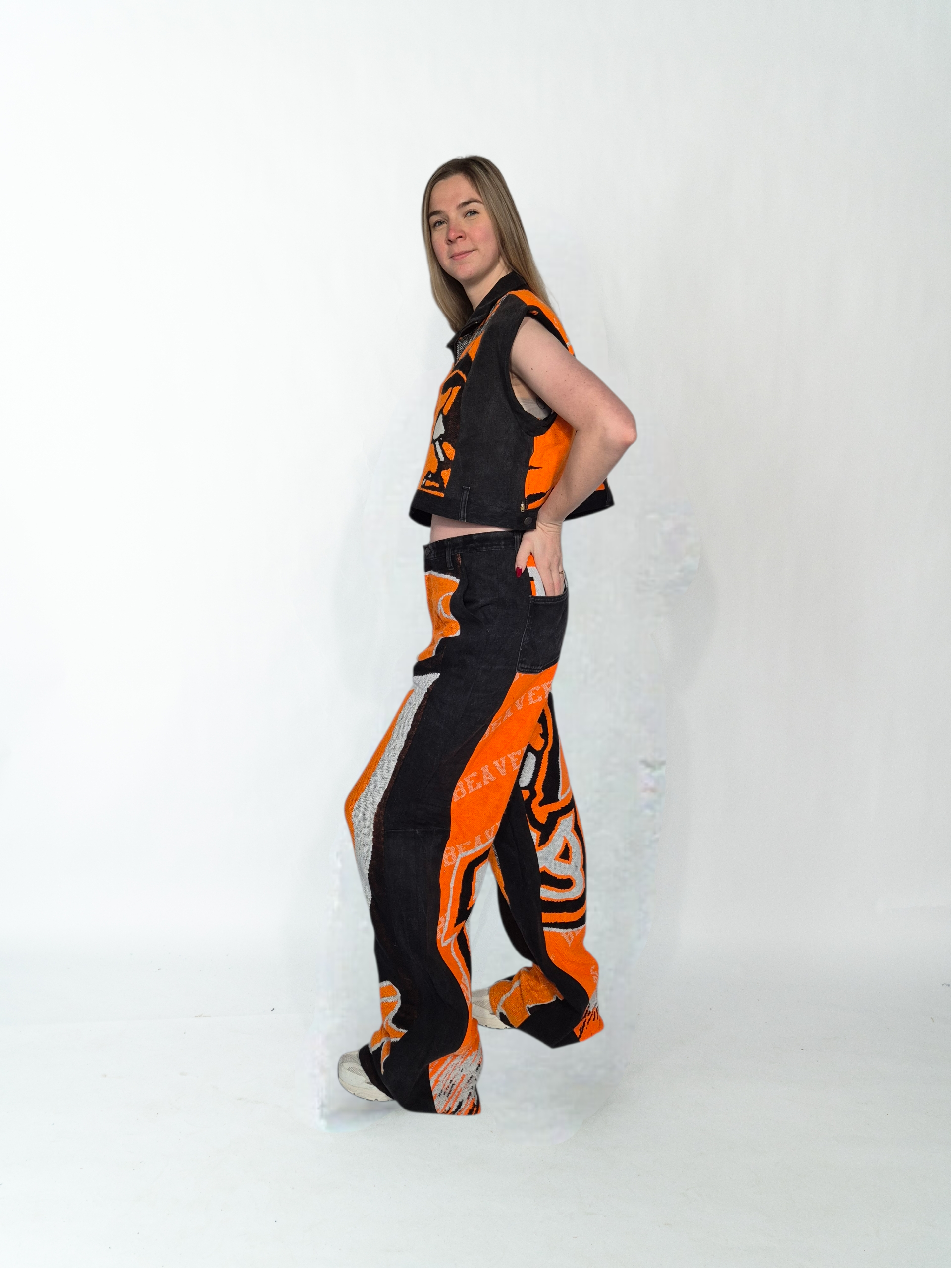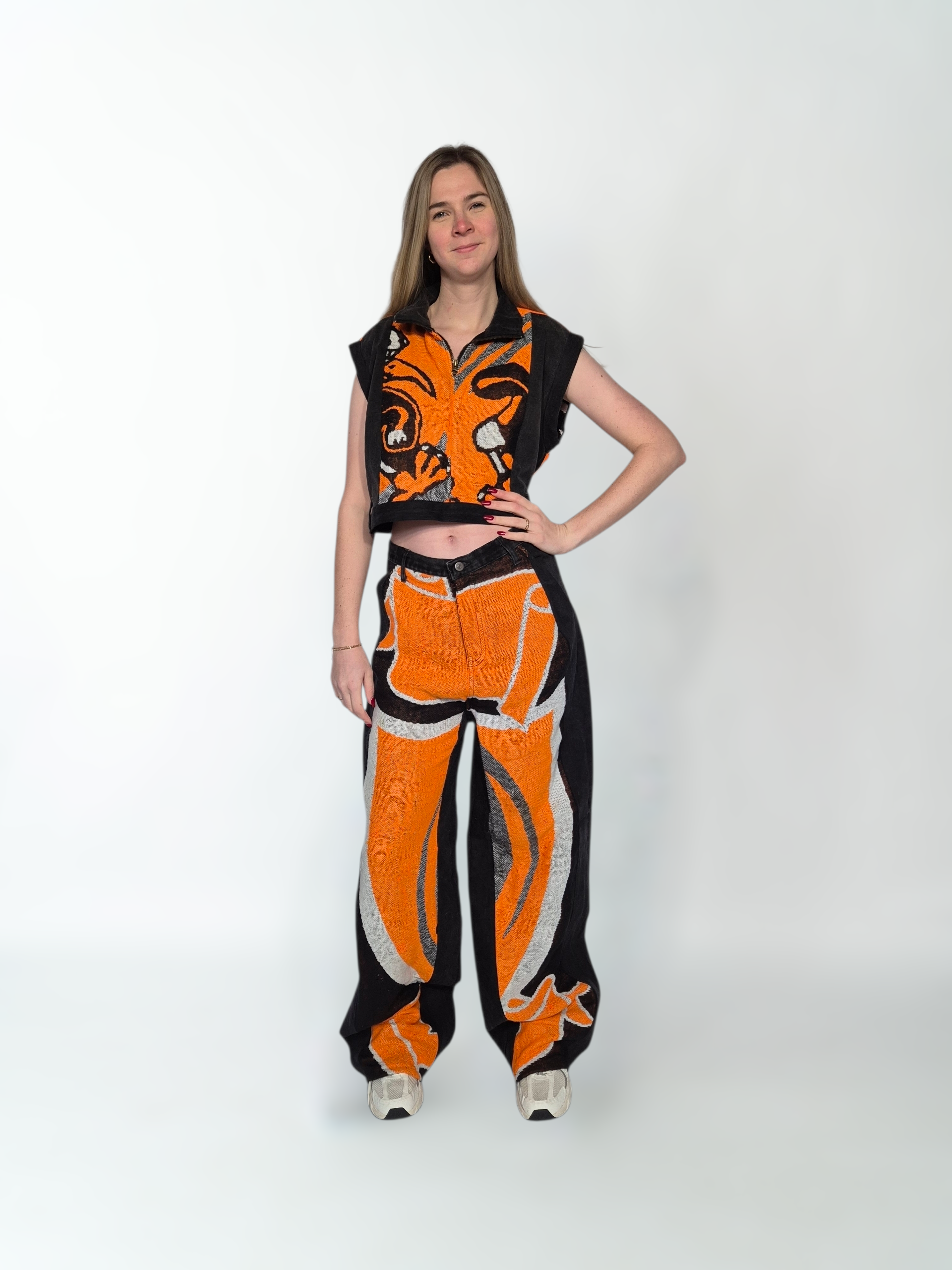 A unique, one-of-one two-set crafted from upcycled tapestry and vintage denim. Every piece is handmade, exclusive, and carries its own story from rescued materials to the final stitching.