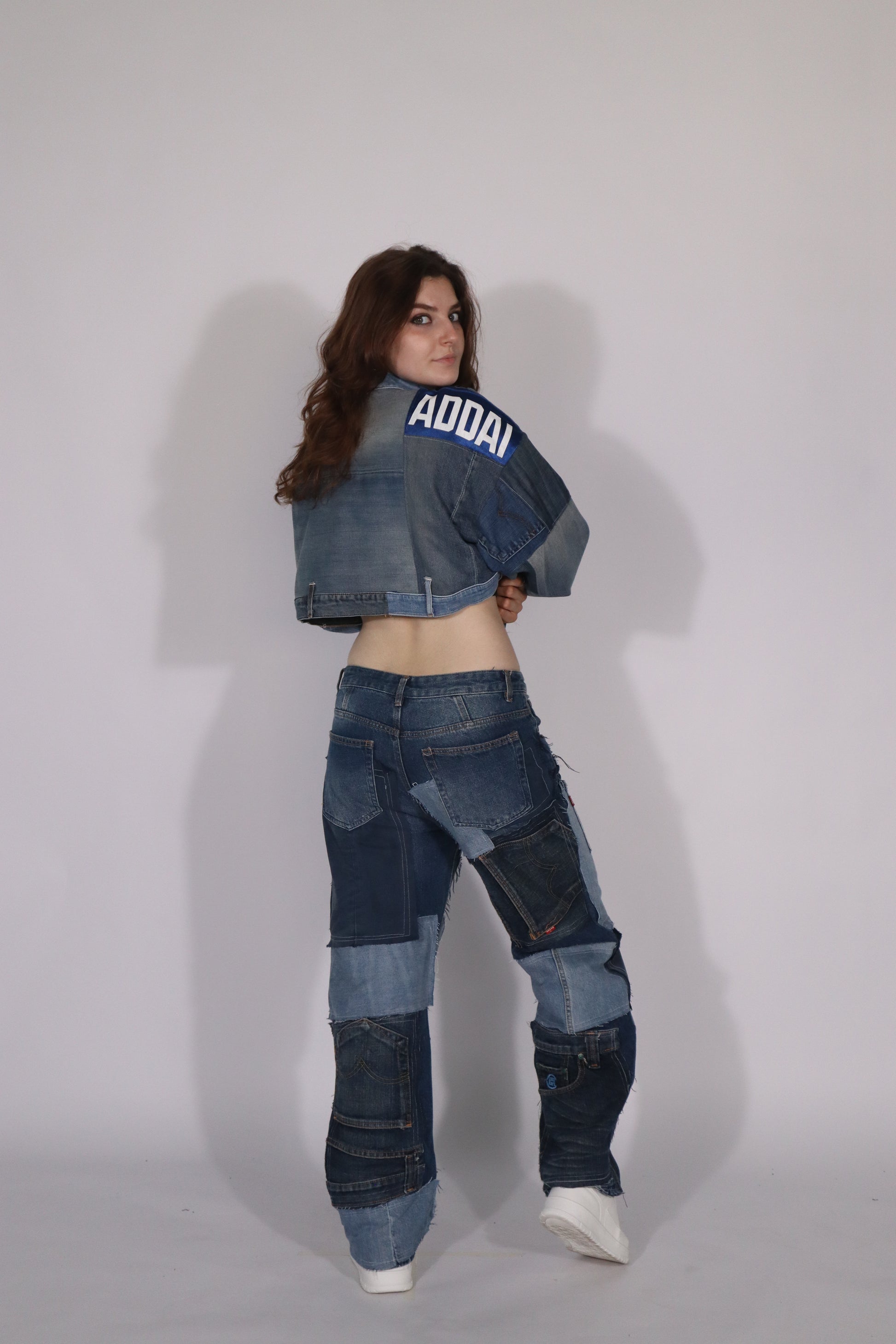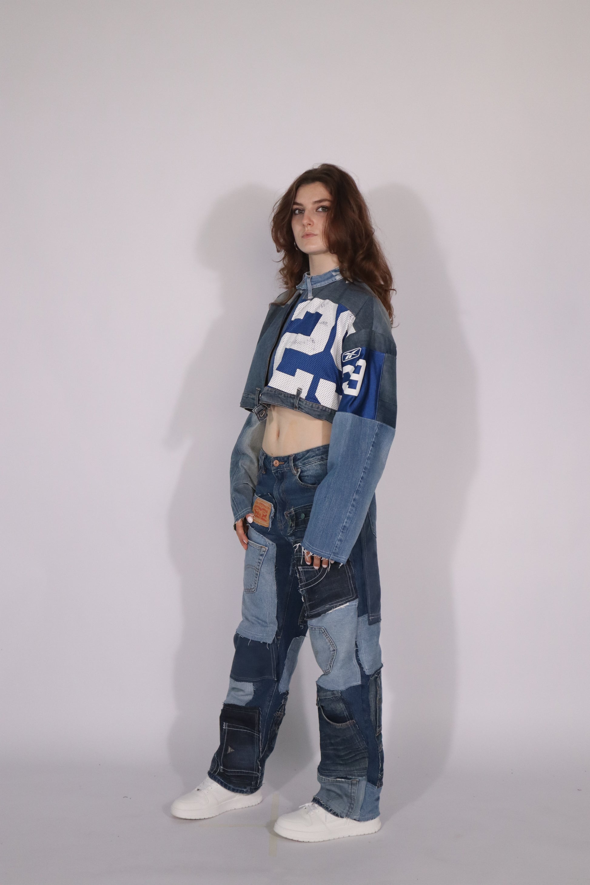 This oversized jacket blends clean lines with bold design for a stylish yet relaxed look. Crafted from upcycled materials, each piece is one-of-a-kind and highlights sustainable craftsmanship.