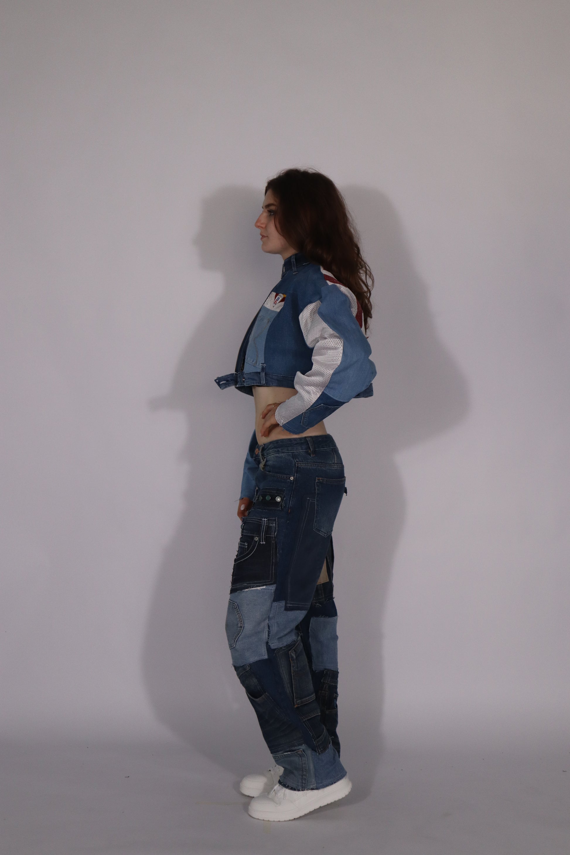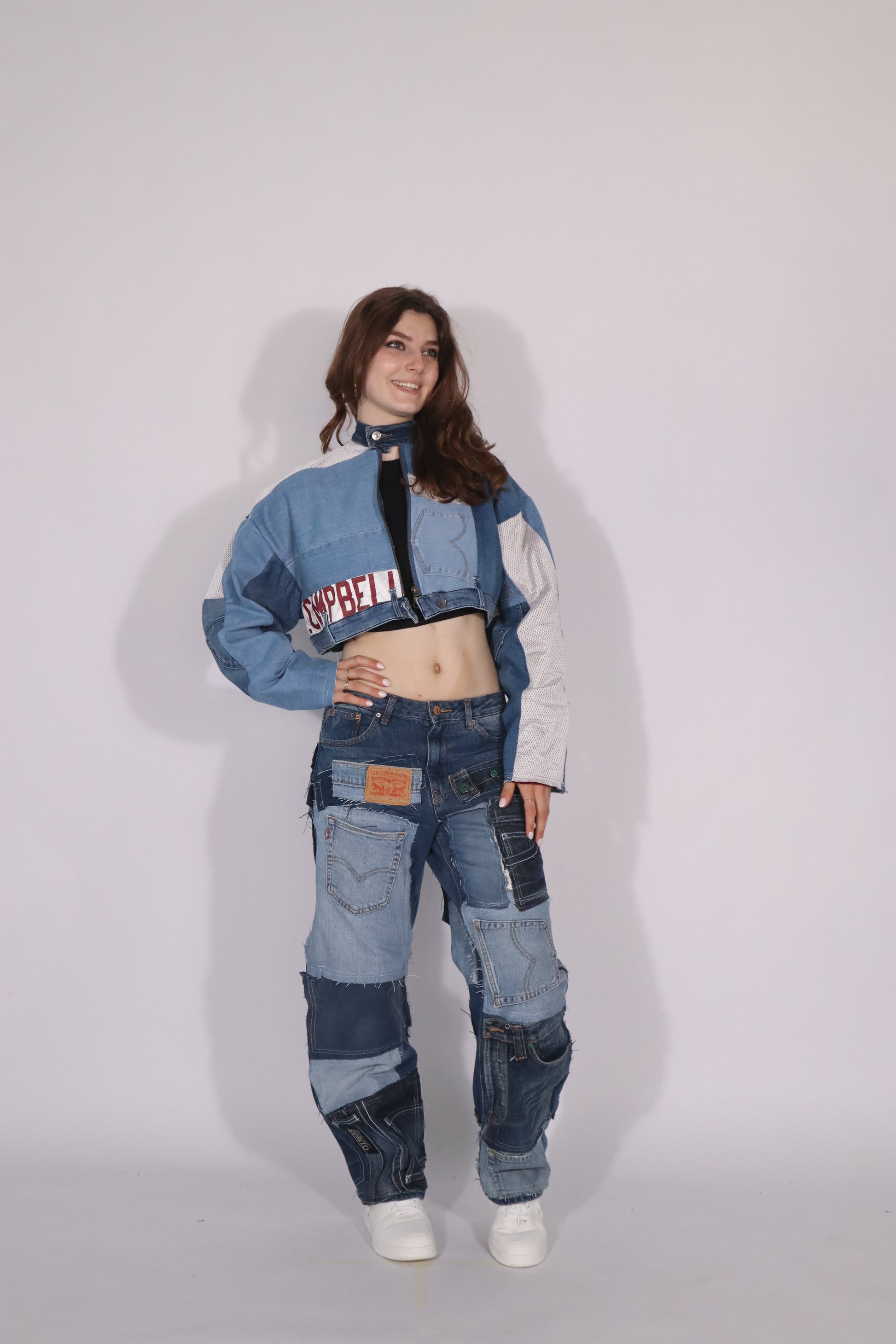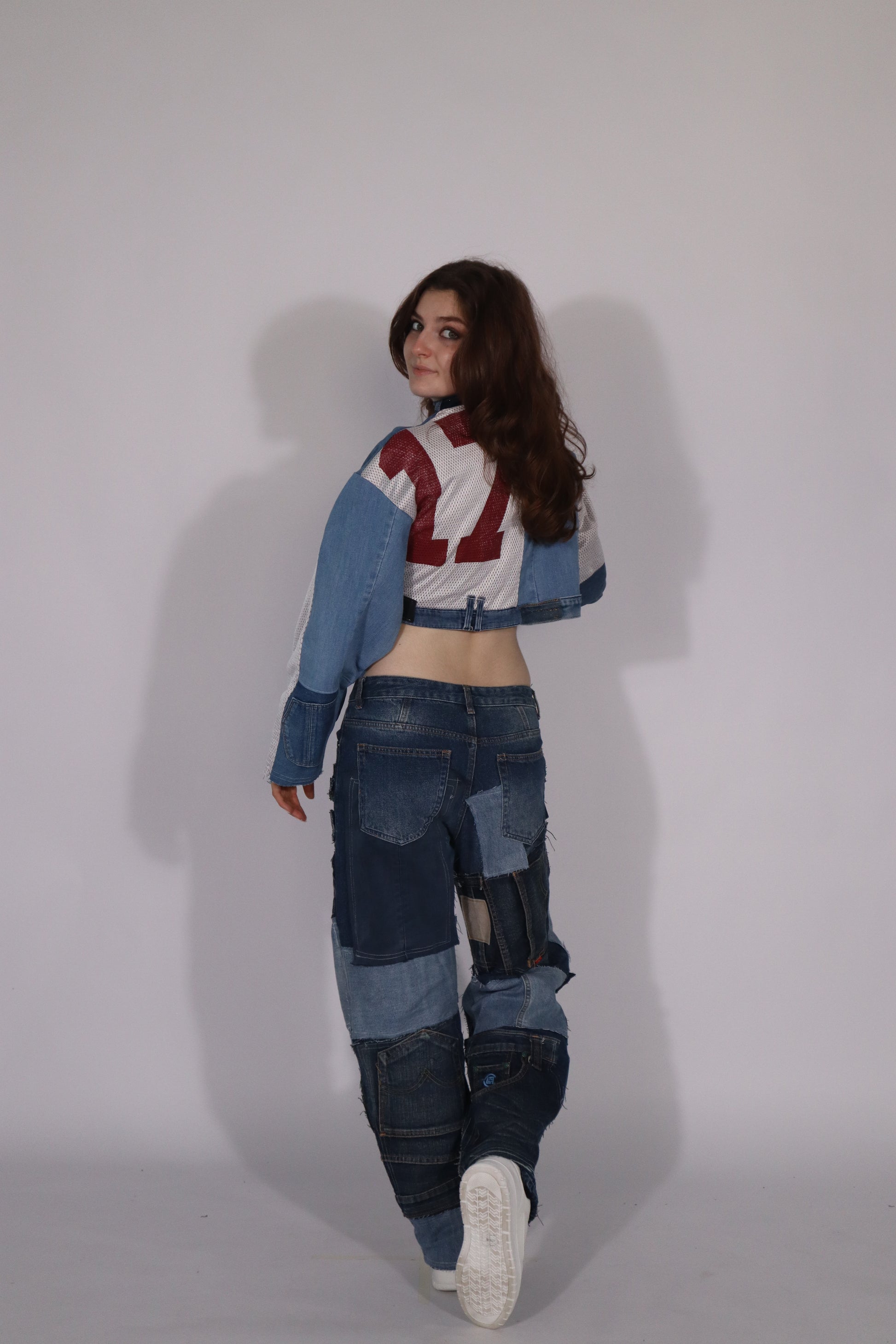 This oversized jacket blends clean lines with bold design for a stylish yet relaxed look. Crafted from upcycled materials, each piece is one-of-a-kind and highlights sustainable craftsmanship.