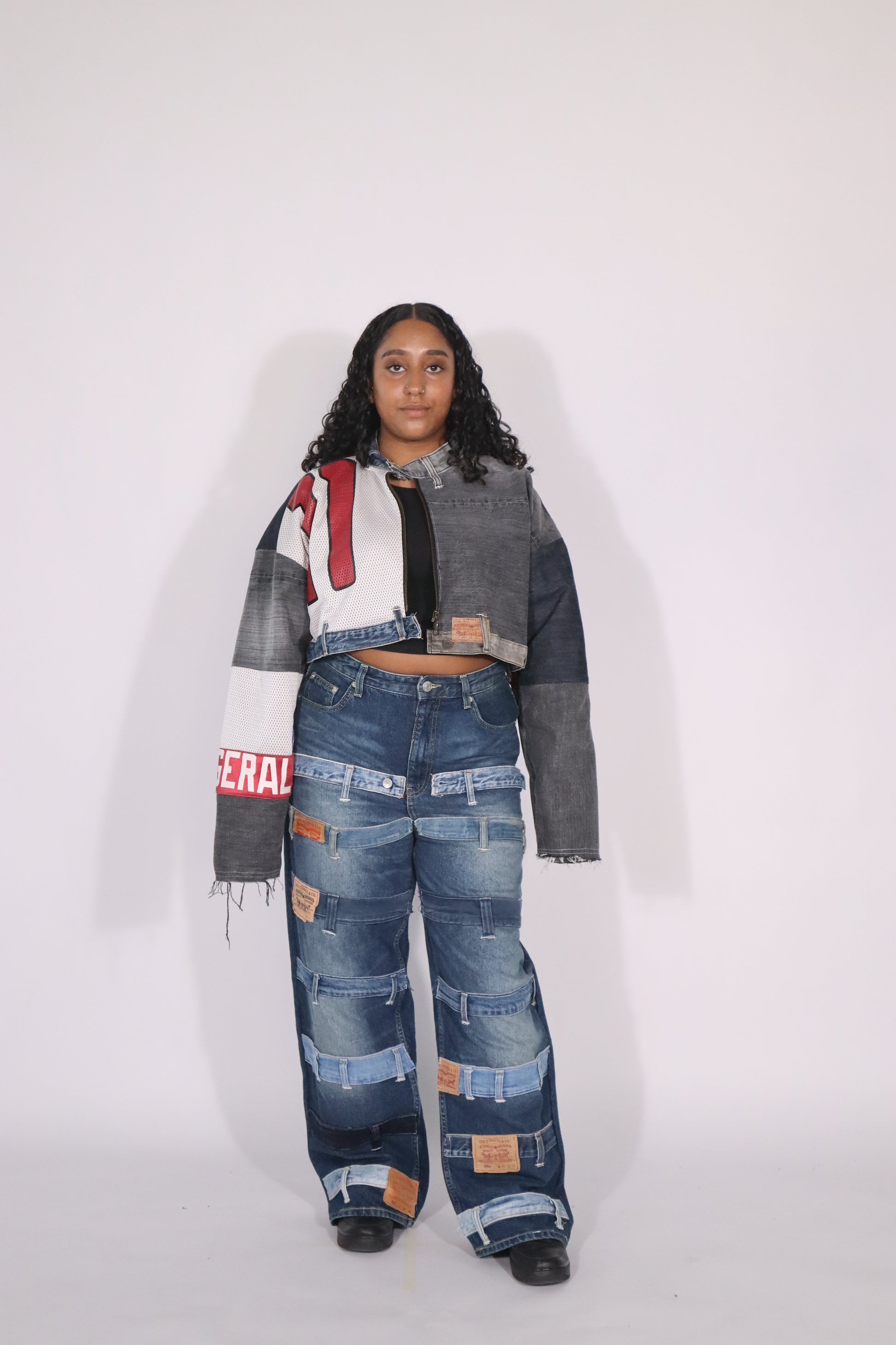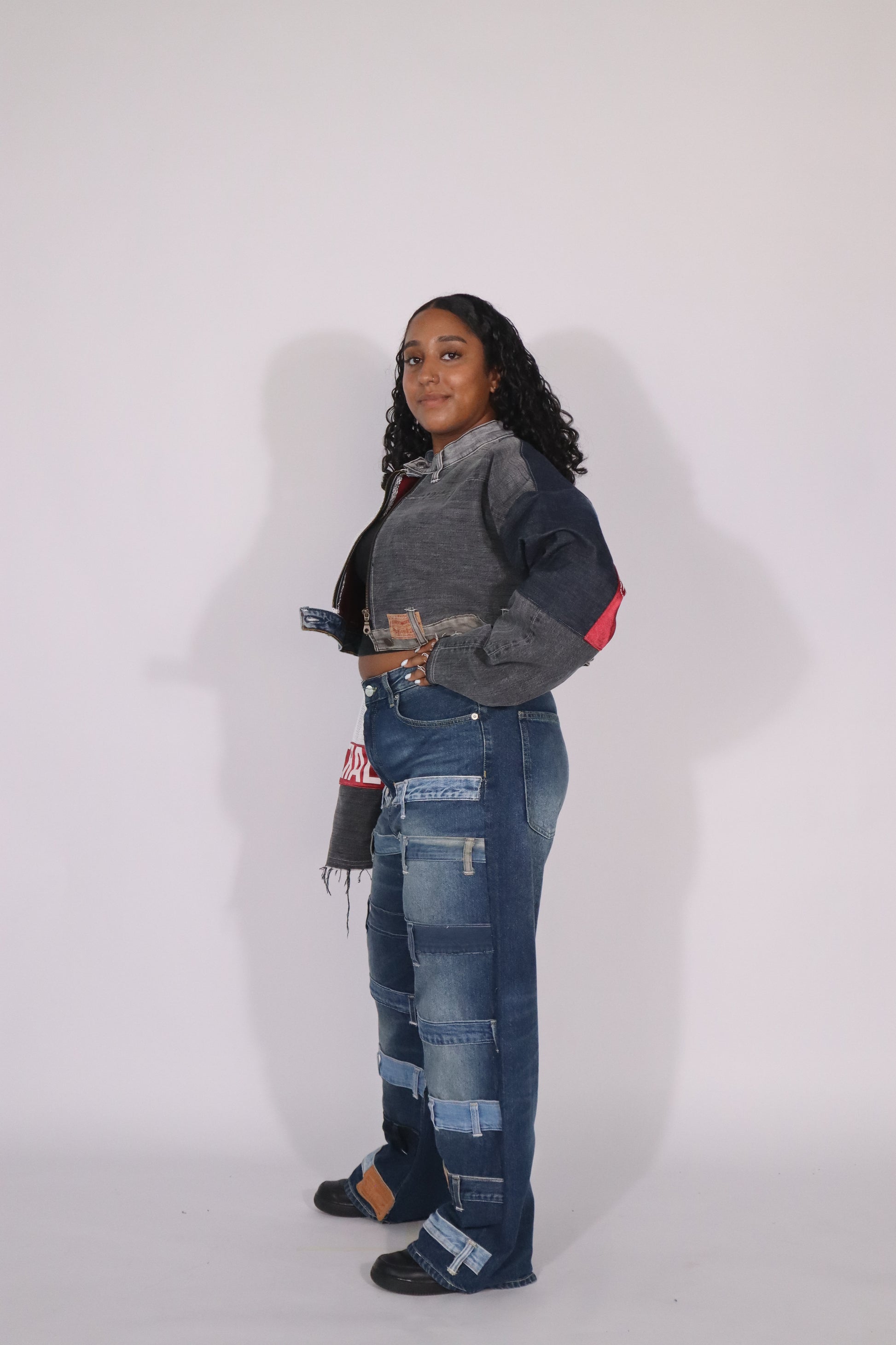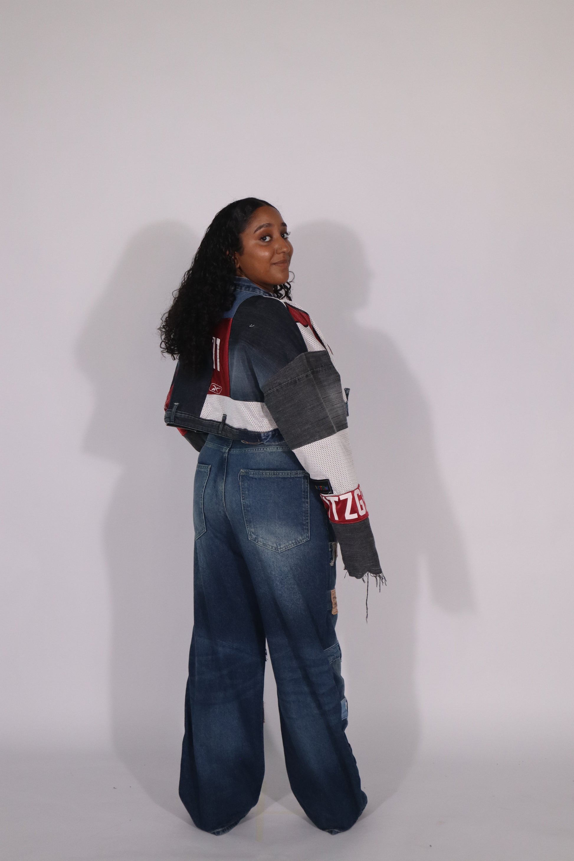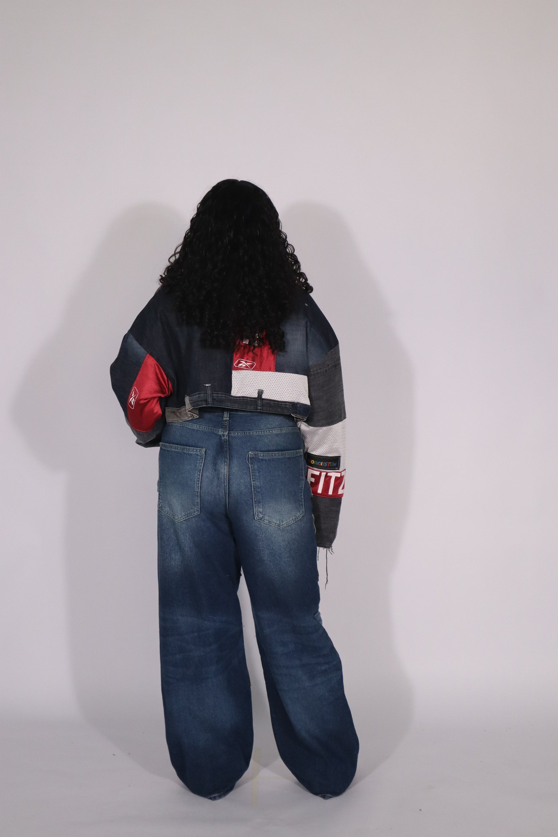This oversized jacket blends clean lines with bold design for a stylish yet relaxed look. Crafted from upcycled materials, each piece is one-of-a-kind and highlights sustainable craftsmanship.