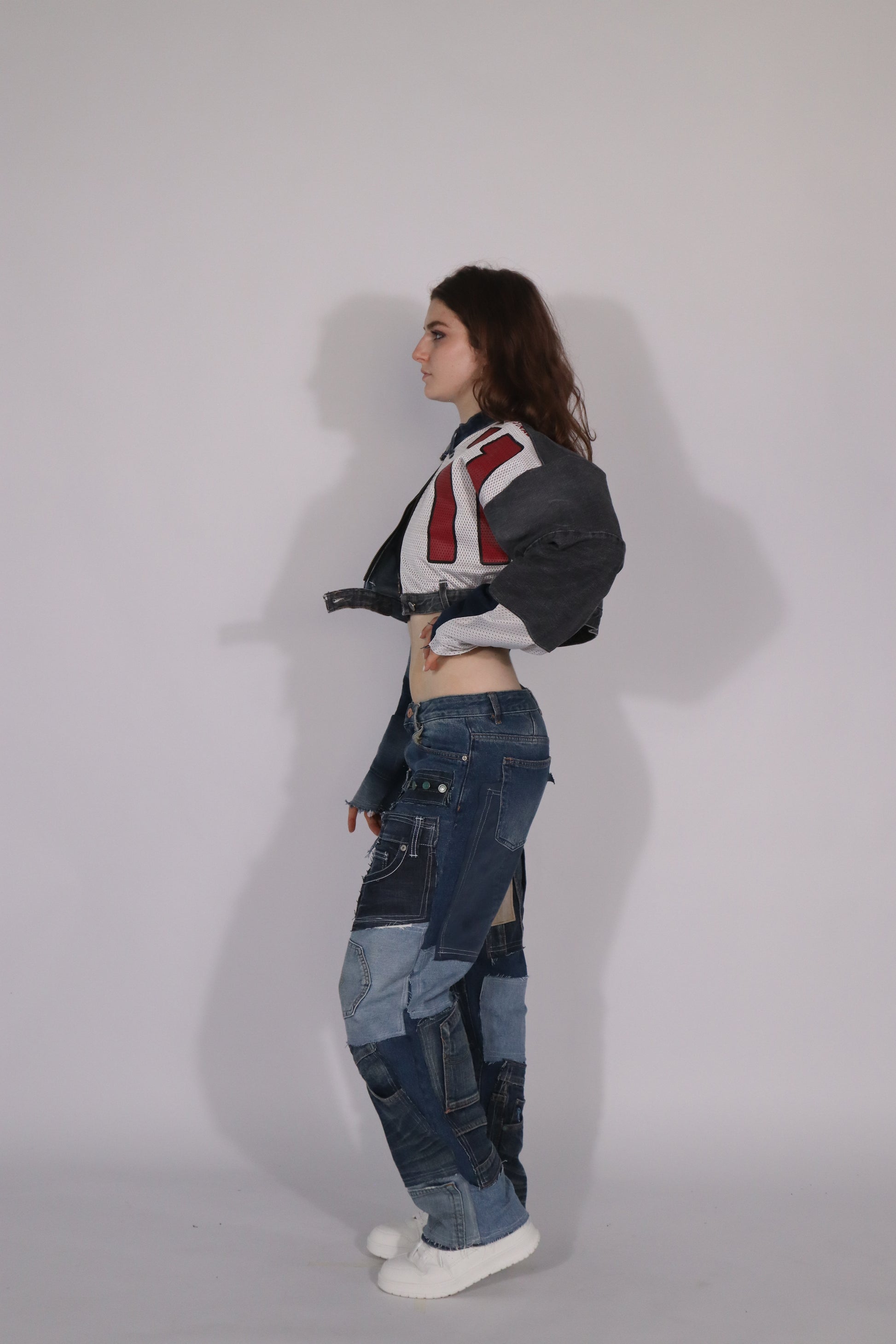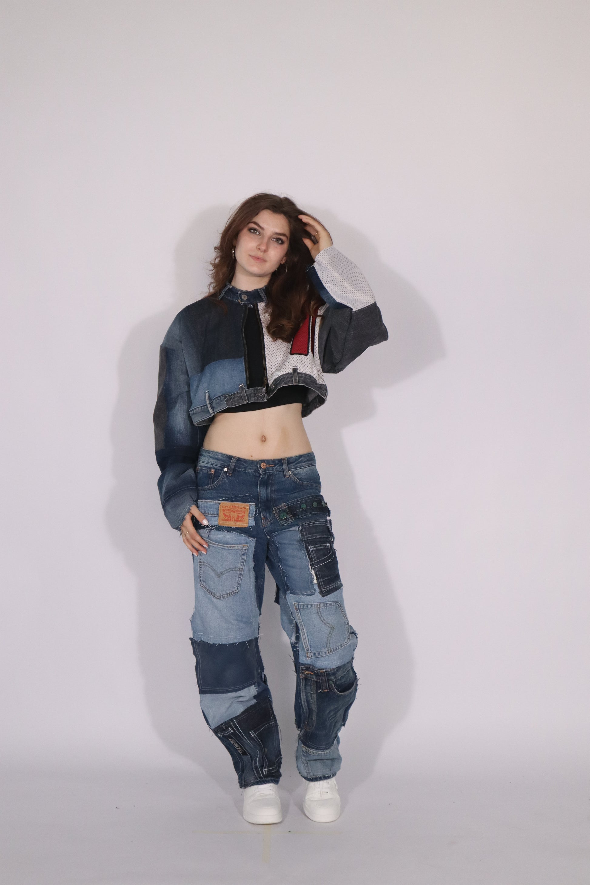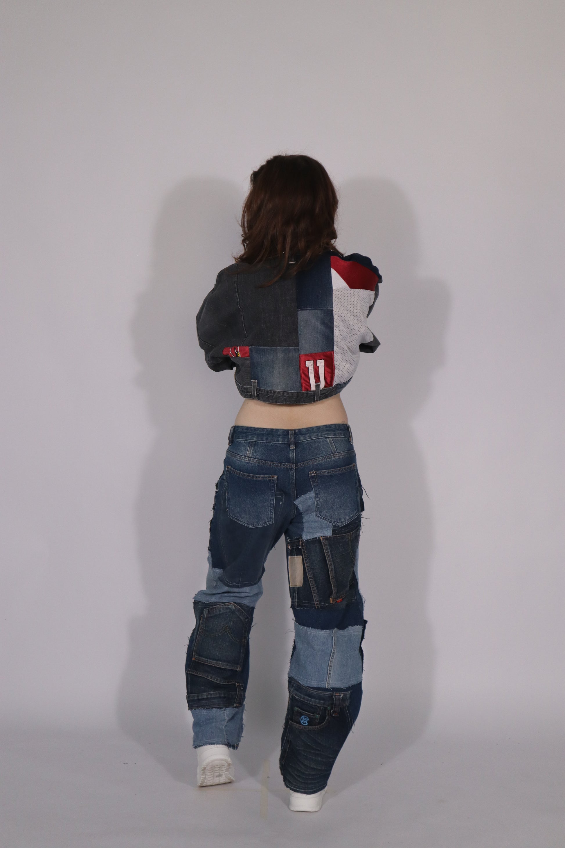 This oversized jacket blends clean lines with bold design for a stylish yet relaxed look. Crafted from upcycled materials, each piece is one-of-a-kind and highlights sustainable craftsmanship.