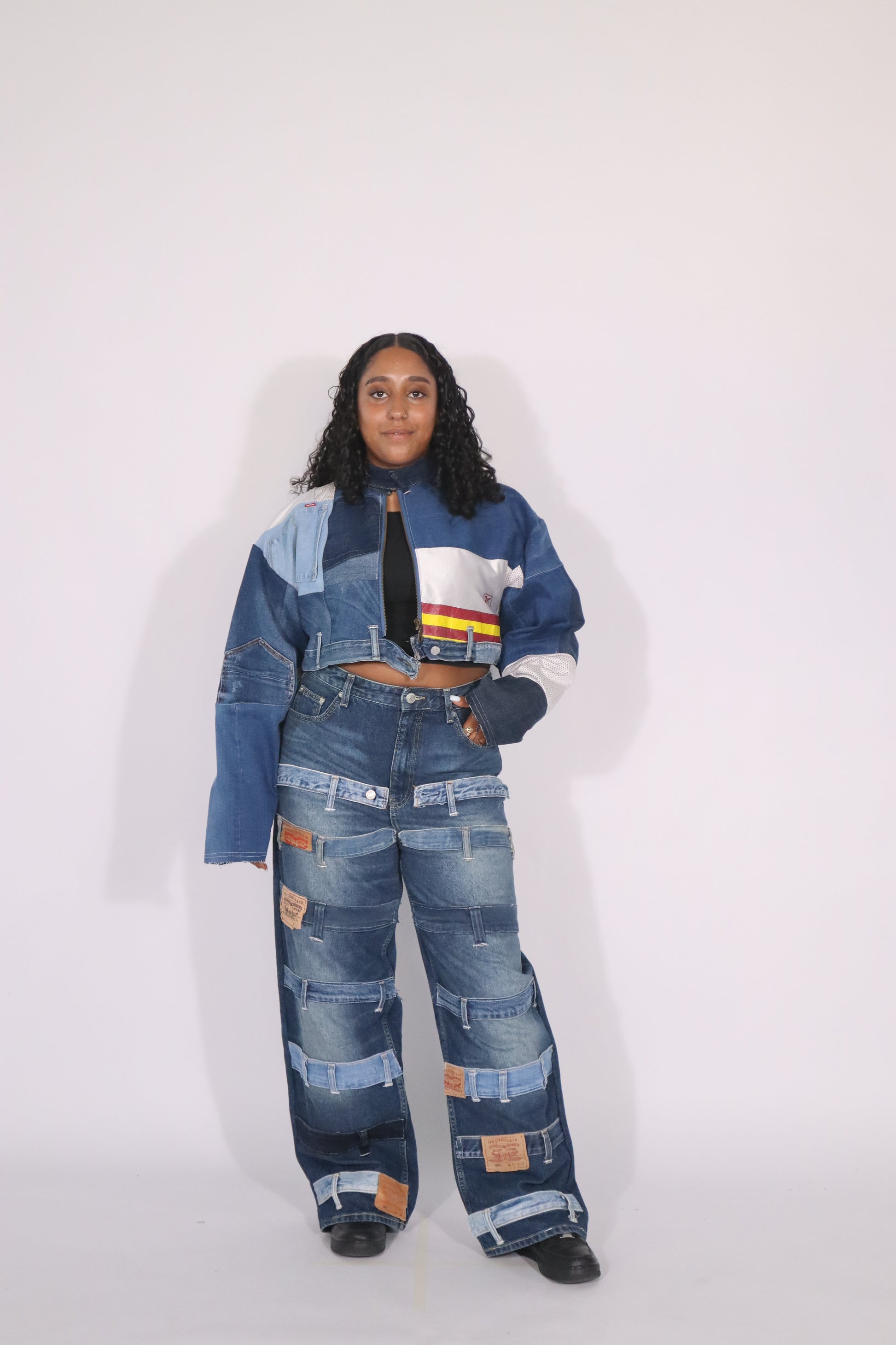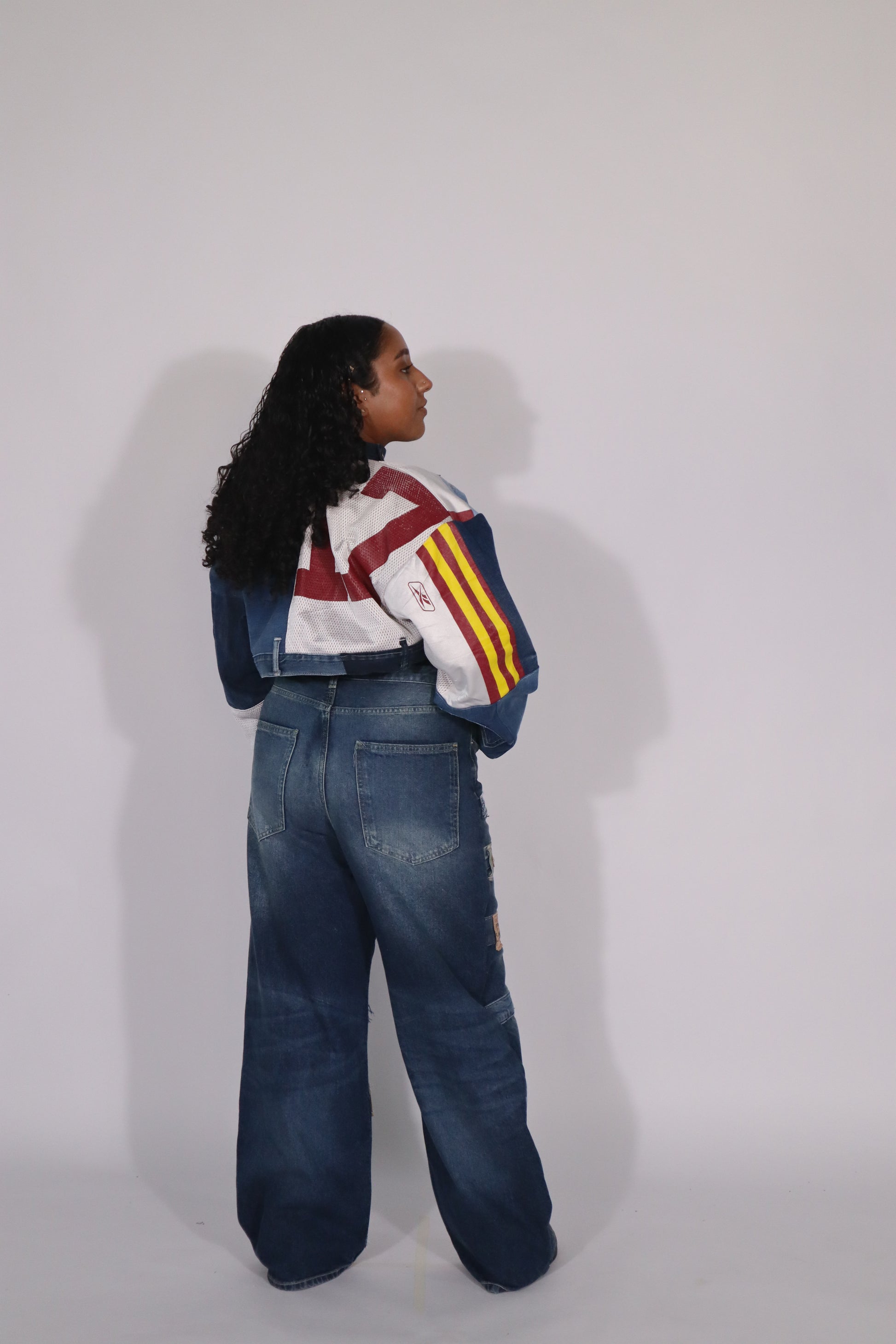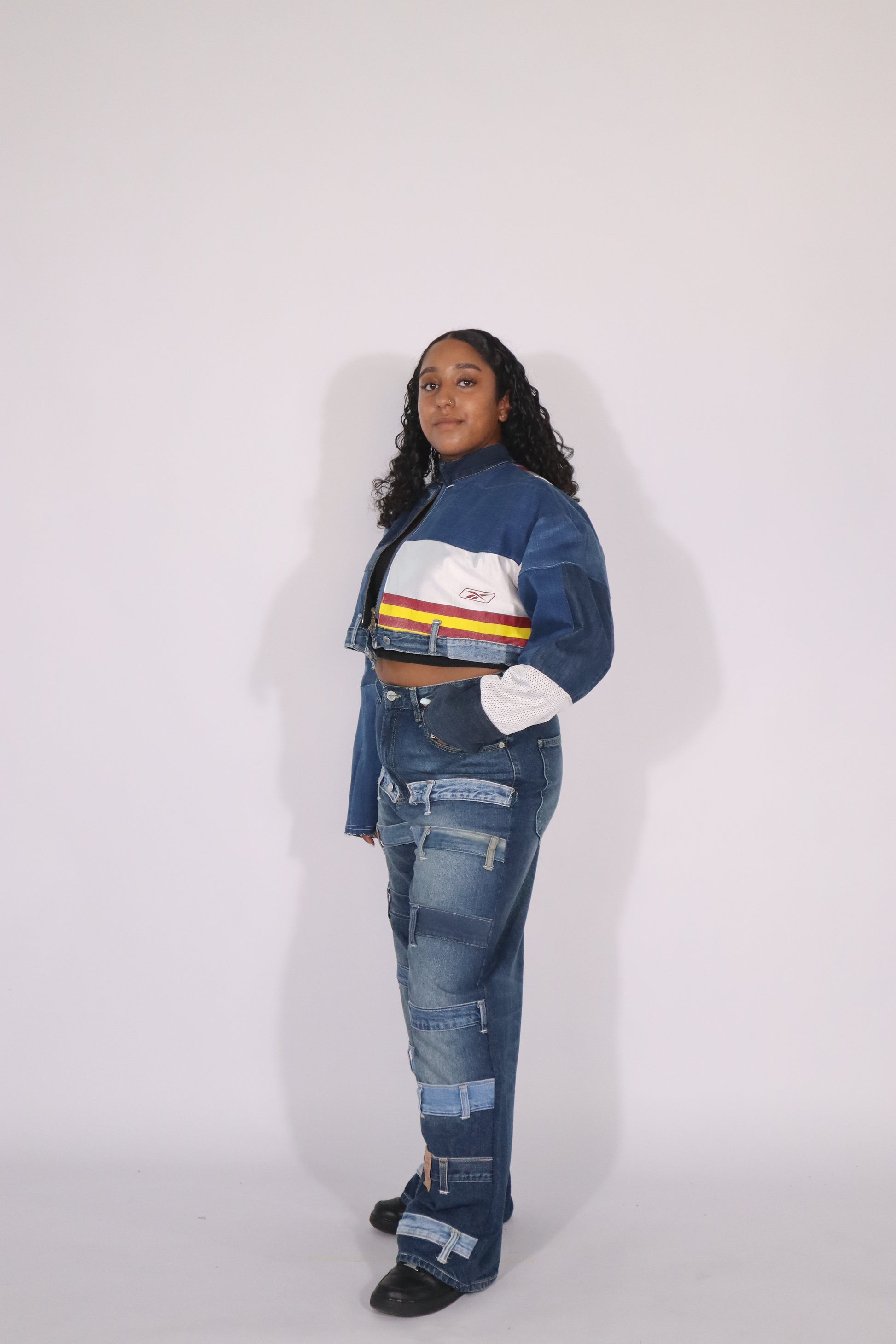 This oversized jacket blends clean lines with bold design for a stylish yet relaxed look. Crafted from upcycled materials, each piece is one-of-a-kind and highlights sustainable craftsmanship.