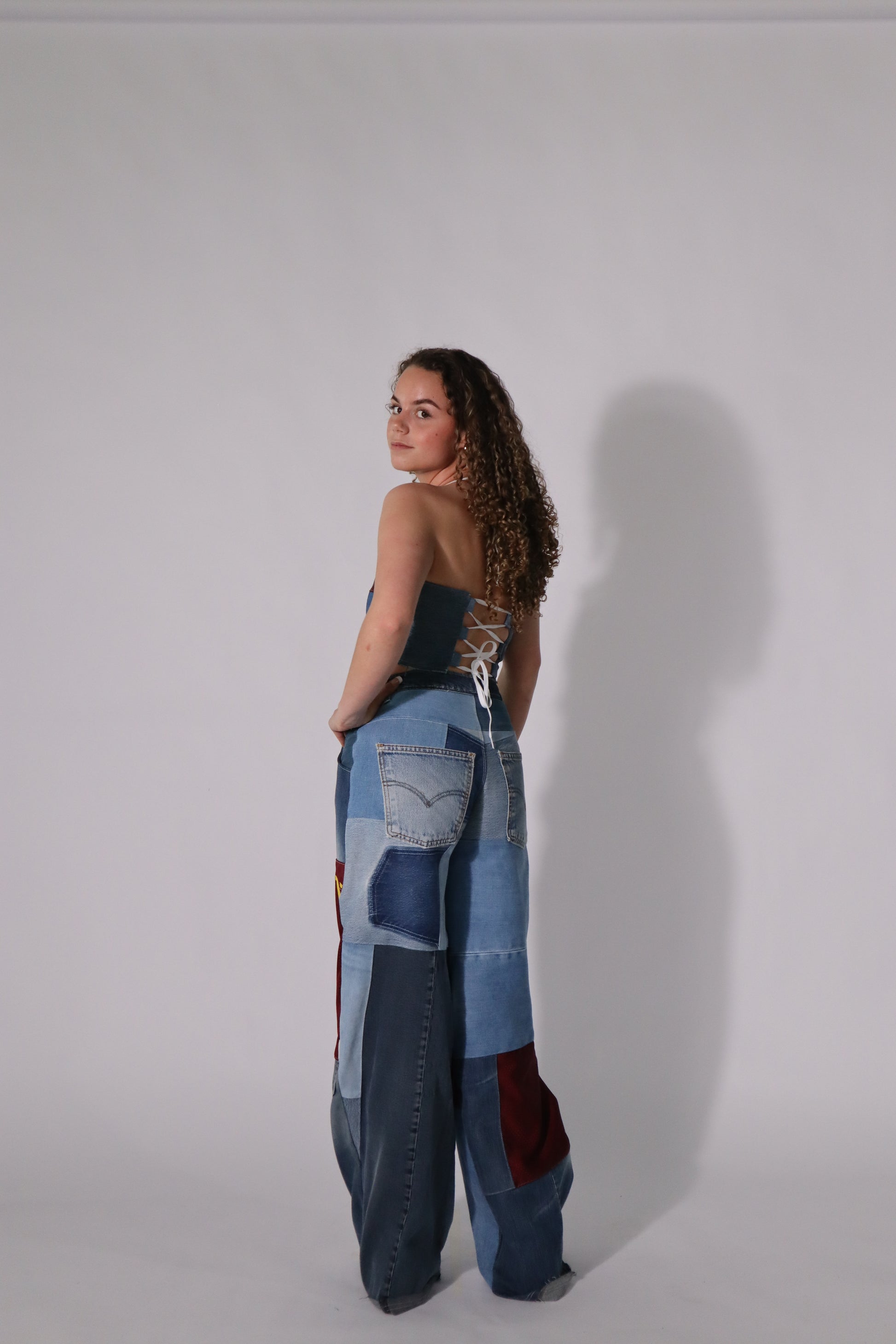 Make a bold statement with this upcycled two-piece set, designed with colorful patchwork and a free-spirited festival feel. Crafted from reclaimed fabrics, each set features a unique mix of textures and tones, giving it that perfectly imperfect, handmade charm.