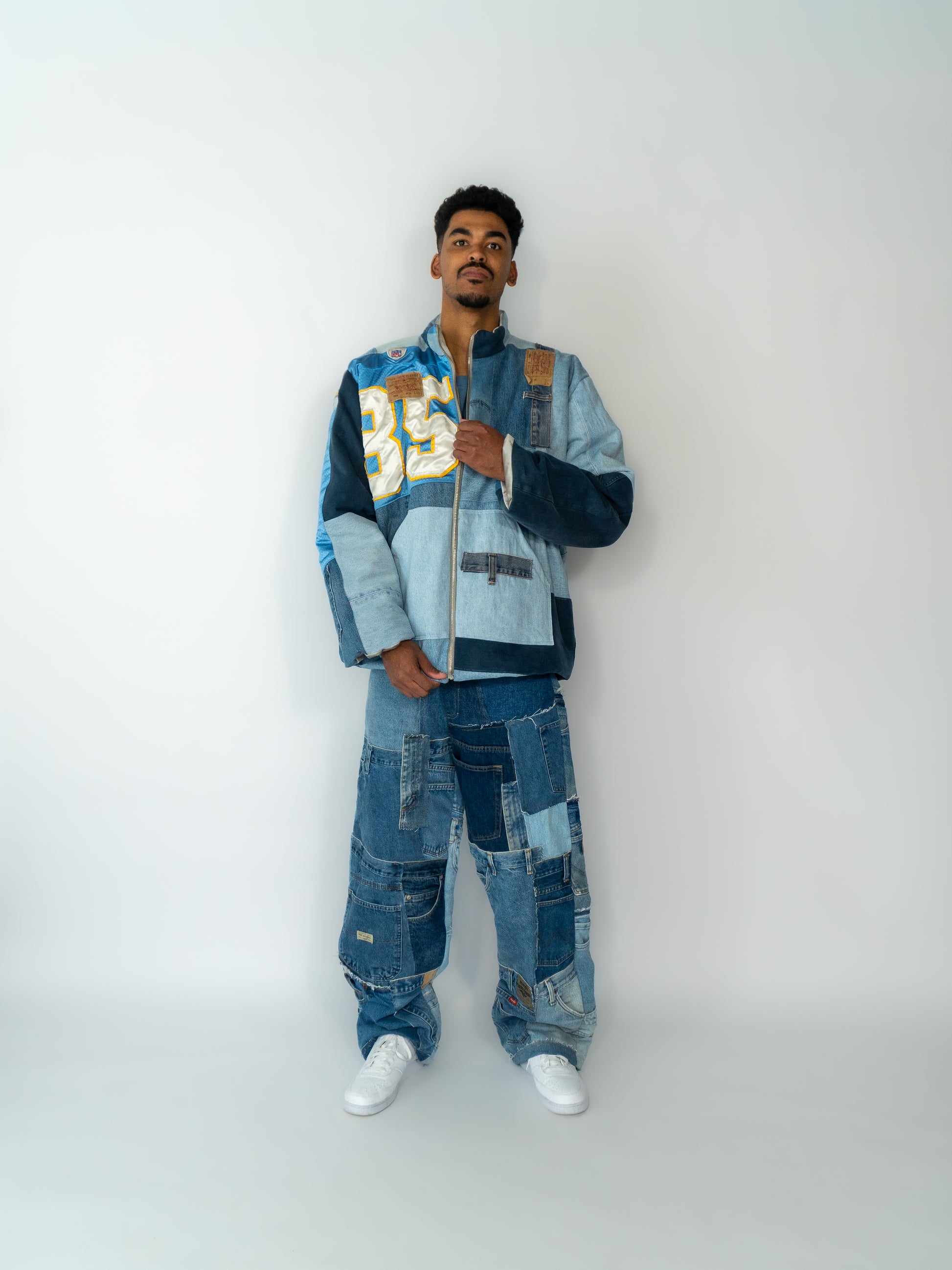 This statement winter jacket is made from a preloved blue football jersey, reworked into a bold and functional outerwear piece. Designed to stand out while keeping you warm, each jacket is individually upcycled and finished by hand — making it truly one of one.